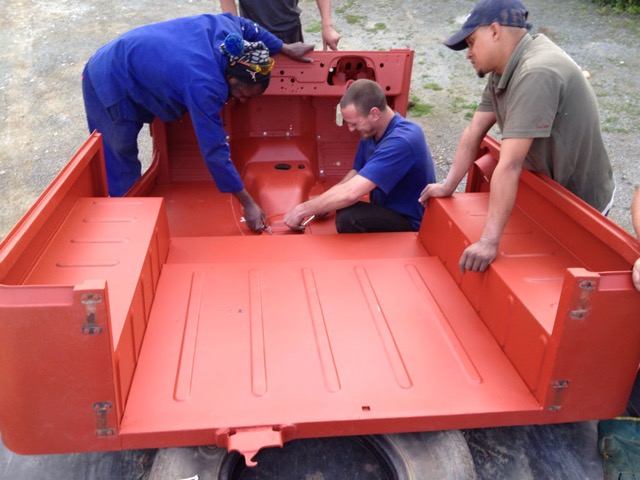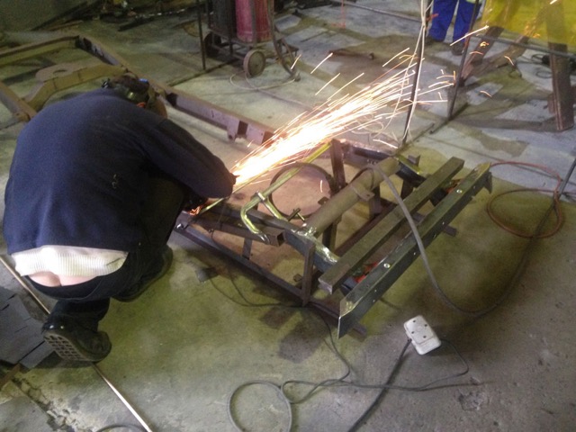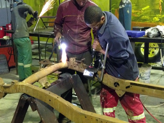 Apprentices learning to use the Oxyacetylene torch and various other tasks like putting in rivets on a chassis, as well as assembling and identifying problems on a gearbox